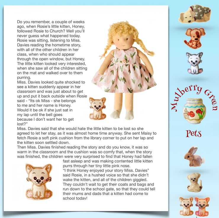 You can read my stories about Mulberry Green on my Facebook and Instagram pages - Maisy Muffin Rag Dolls or alternatively, you can find all of my stories on my Pinterest board - Mulberry Green stories
