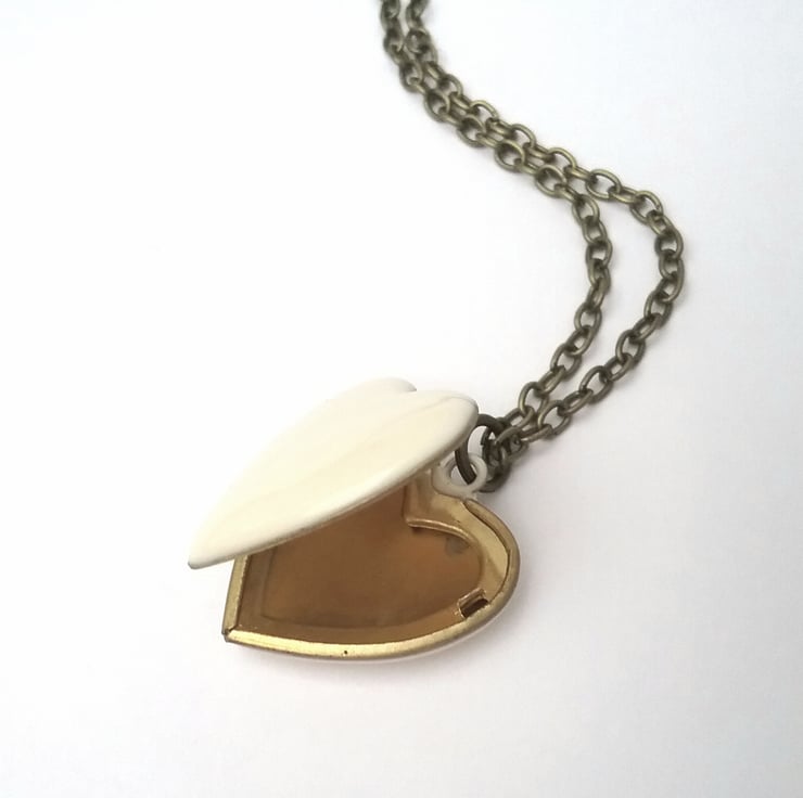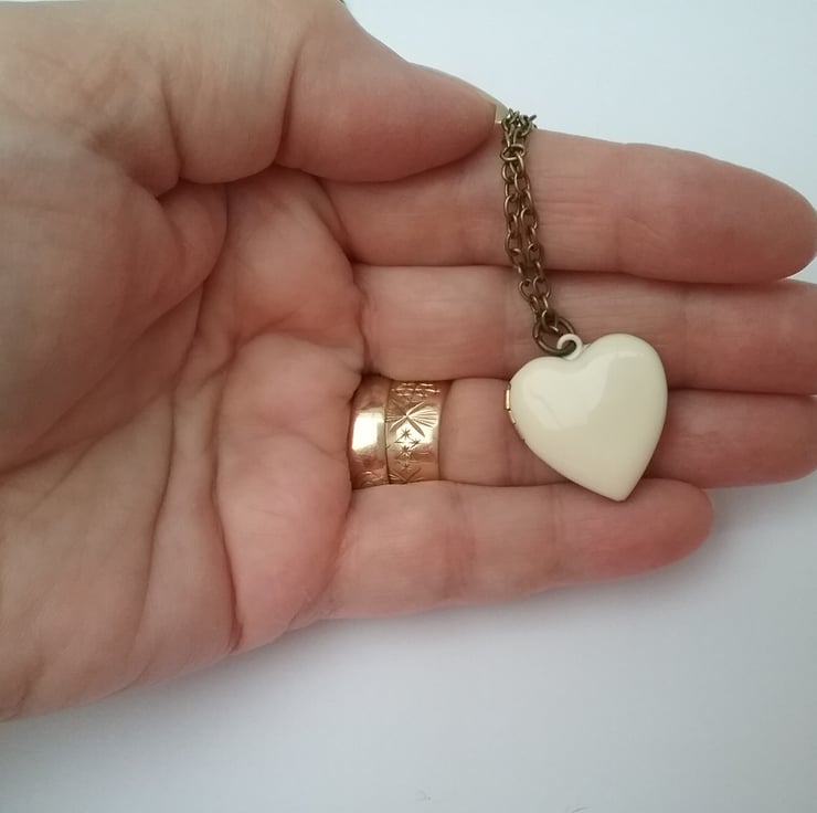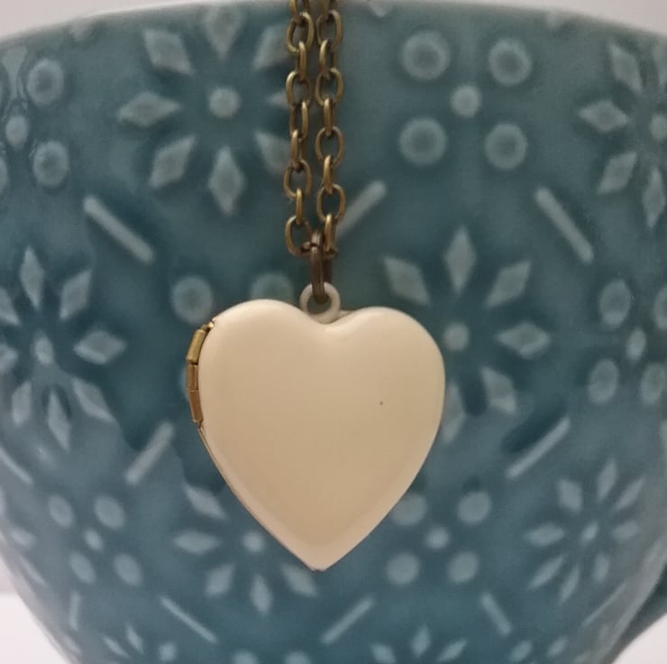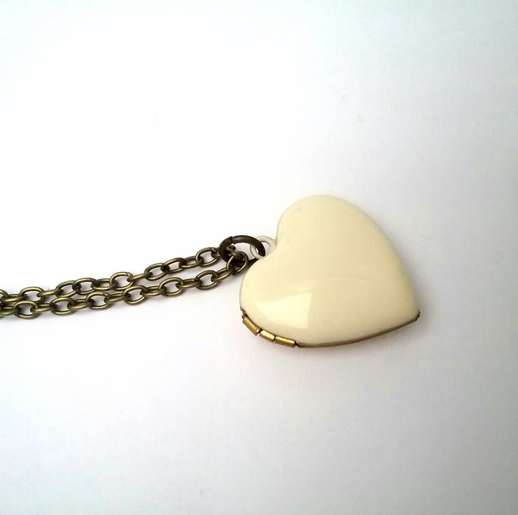 A simple Ivory enamel heart locket.