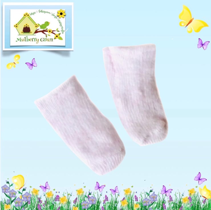 A cute little pair of white ankle socks to fit the Mulberry Green characters. The socks look lovely with the little felt shoes.
