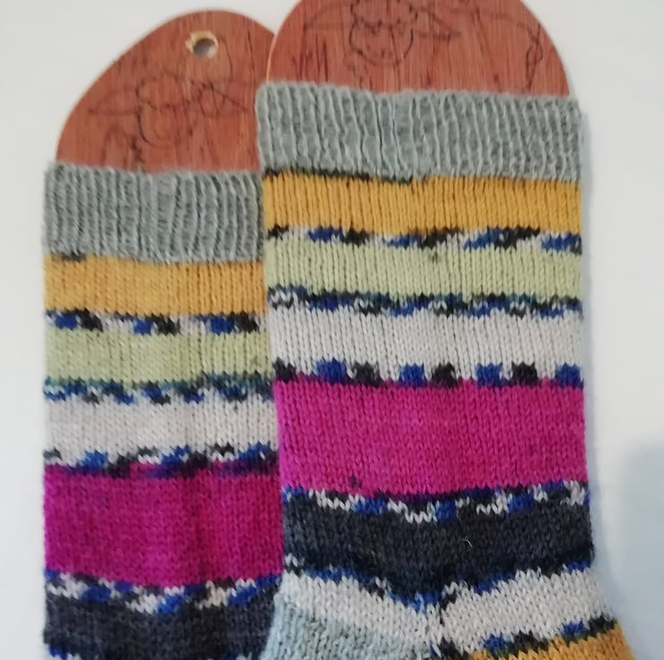 Welcome to my shop, I do hope you enjoy browsing through my knitted (and sometimes crochet) items. I have a passion for sock knitting, and always endeavour to find unique and often one of a kind yarns to create my items.