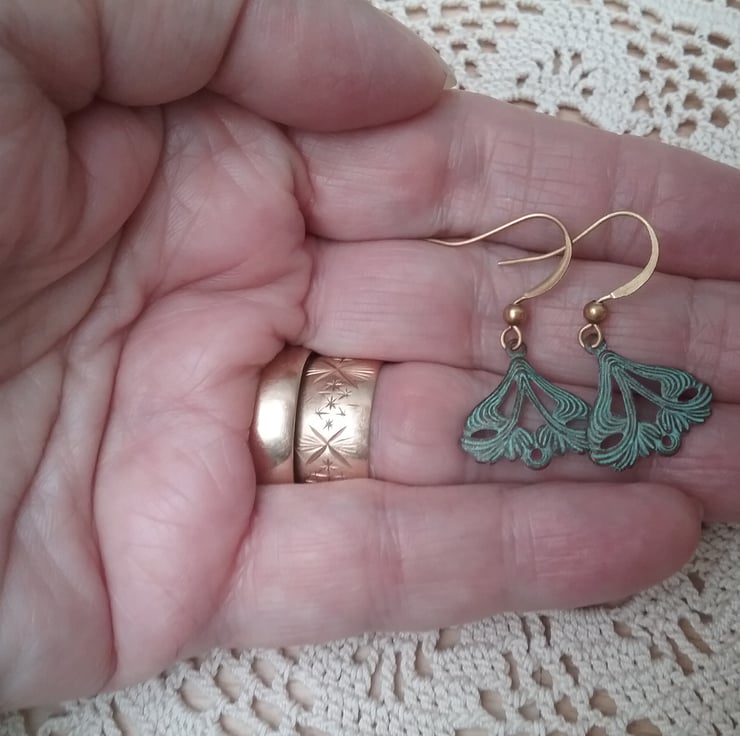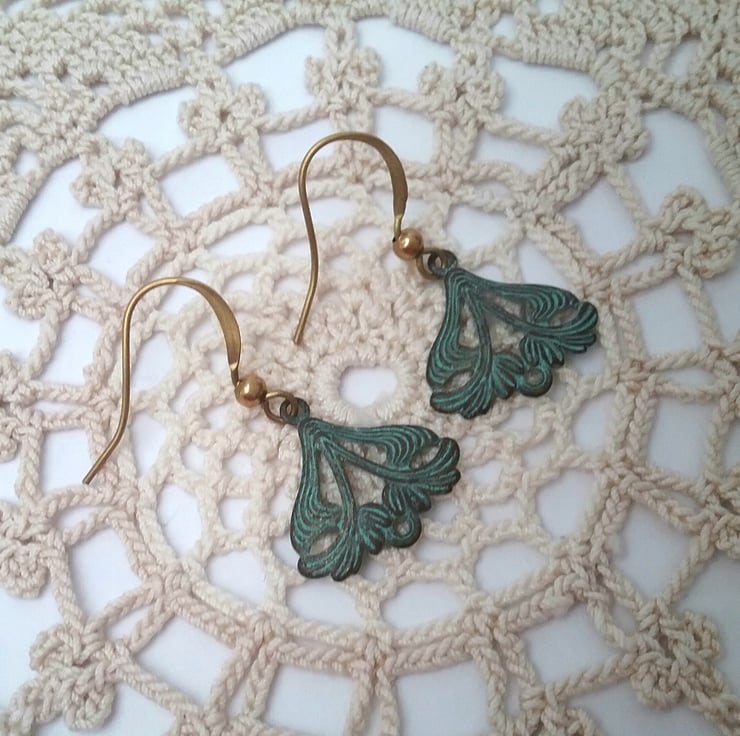 Dainty verdigris art naouveau style earrings