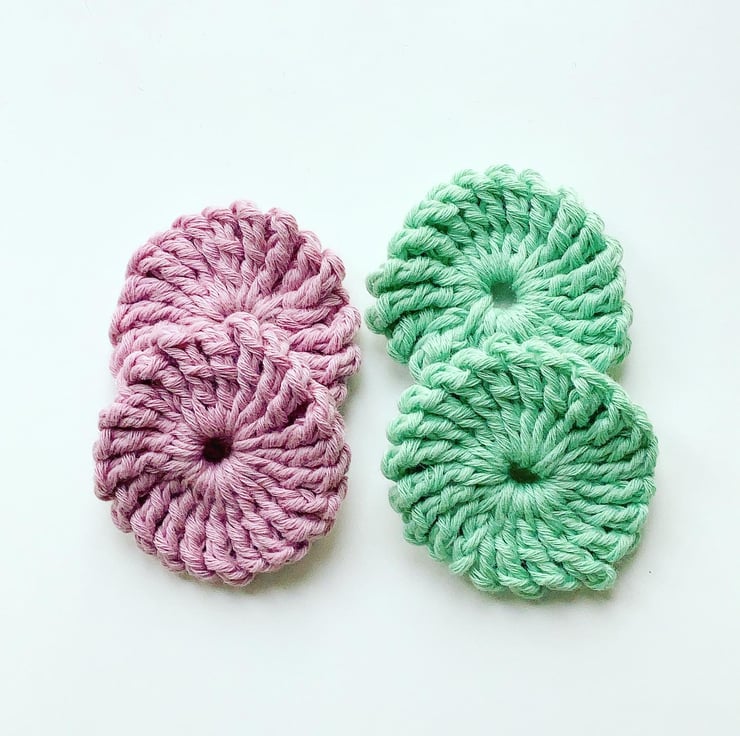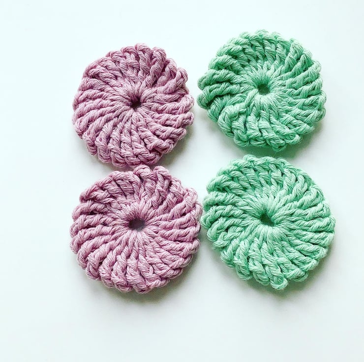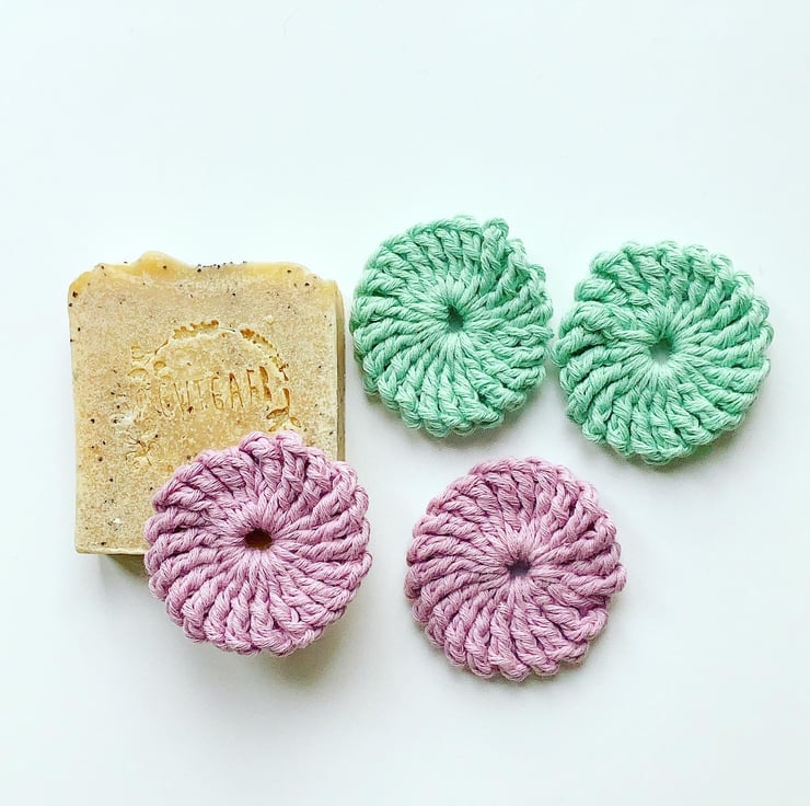 The pack contains four, crochet scrubbies to remove your makeup. Also great for exfoliating or applying cream.