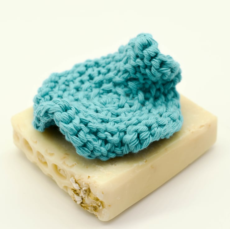 These hand knitted facial scrubbies are washable, reusable, and the perfect thing to add to your eco-friendly skin care routine.