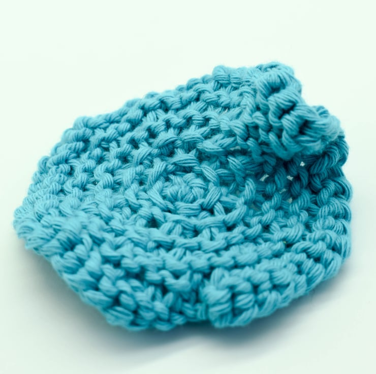 These hand knitted facial scrubbies are washable, reusable, and the perfect thing to add to your eco-friendly skin care routine.