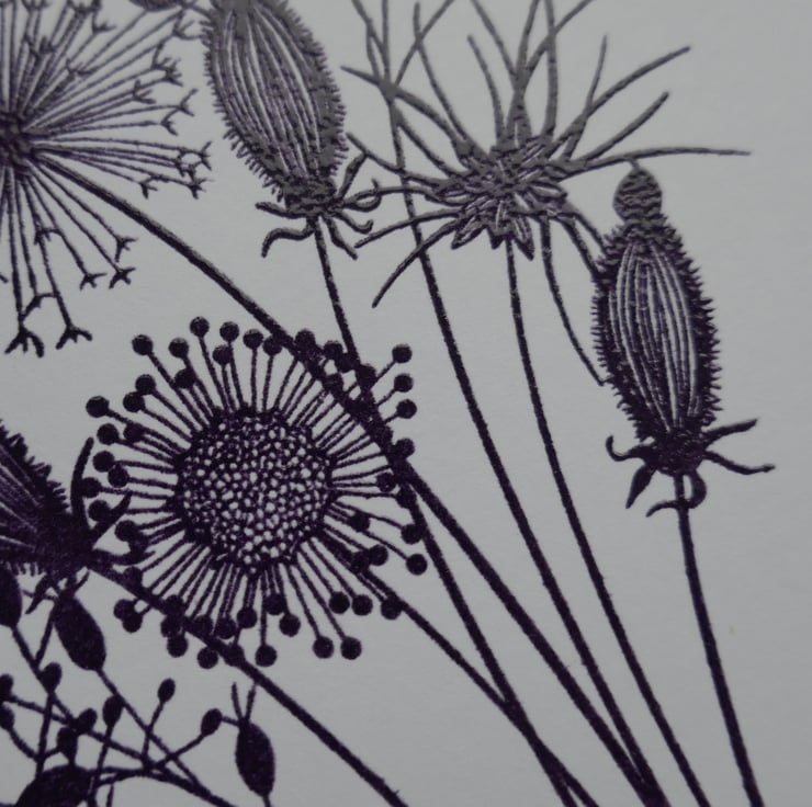The seedheads image and sentiment 'With Sympathy' have been stamped onto the card in purple ink and embossed to give them a lovely shine.