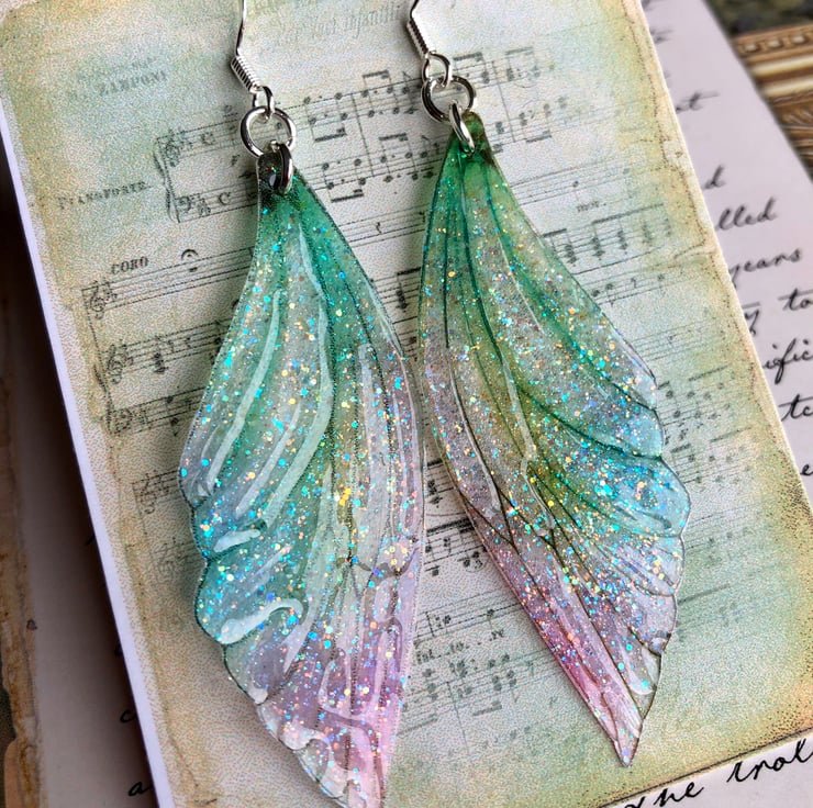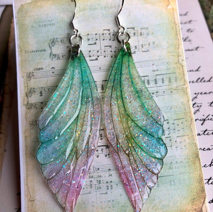 Enchanting pastel fairy wing earrings.
