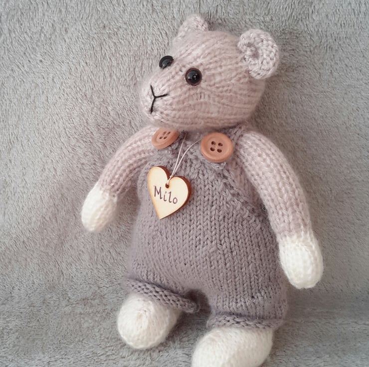 The knitted animals are not my designs, Milo and Moo are from a pattern by Gypsycream Designs, Huggable bears.
