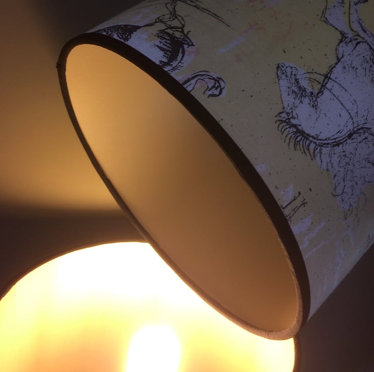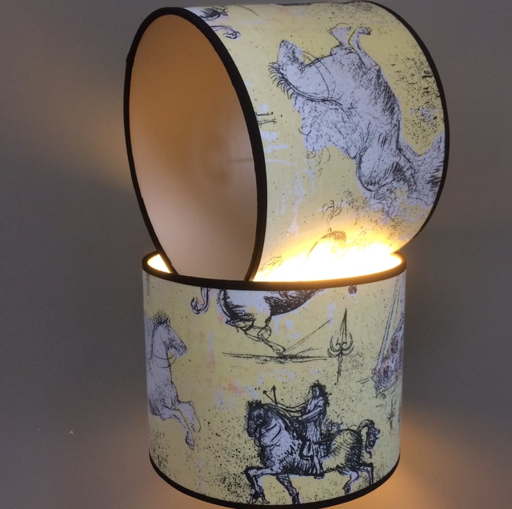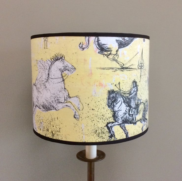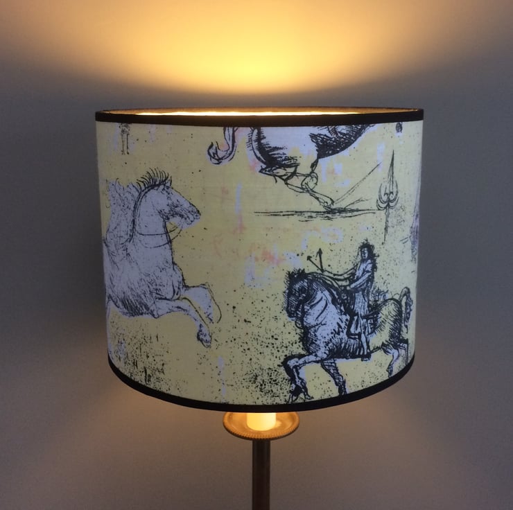 Yellow Da Vinci Horse Sketch Shabby Chic Vintage Fabric Lampshade - made with recycled fabric that had a few slight flaws which I have tried to show in my pictures - quite minor though.