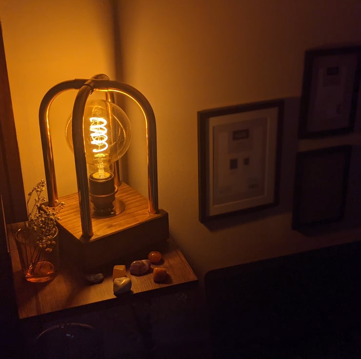 With my last lamp (the one with flames) I really started to enjoy using copper along with my woodwork. I realised that an oil lamp wasn't for everyone so set out to make something a bit more user friendly by making a simple "plug & play" lamp whilst trying to keep to the same design aesthetics as my previous works.