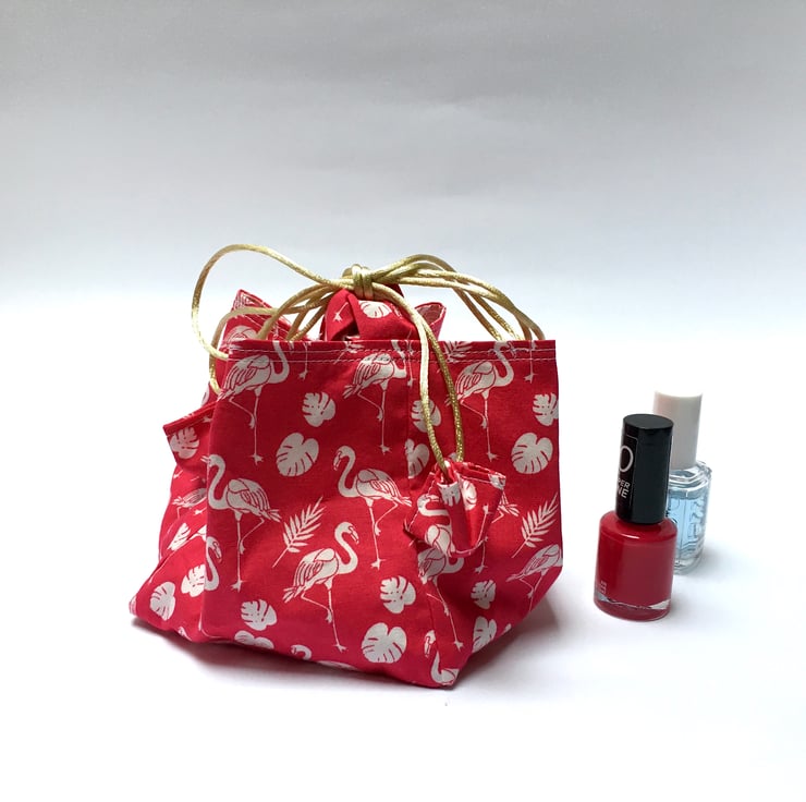 The Japanese fabrics I have been using to create my masks have encouraged me to explore Japanese culture and accessories. I love the bright fabric, which creates a fun bag.