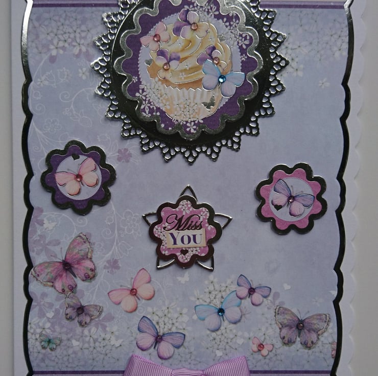This is a lovely luxury 3D handmade greeting card to send to someone to tell them how much you miss them.