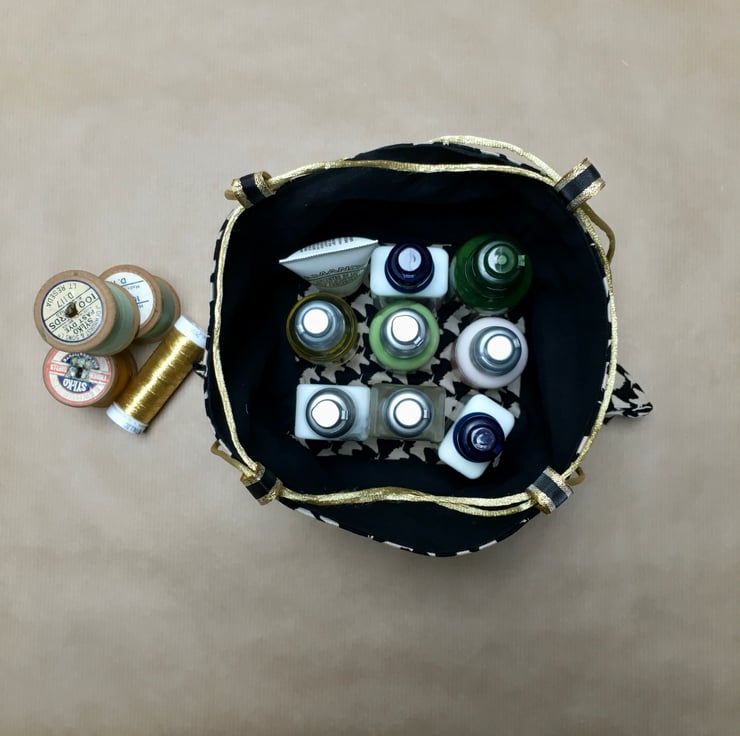 The bag would make a fab gift bag for someone special, and holds a lot given its size, as can be seen in the photos. It could also be used to hold a small ball of wool and craft items.