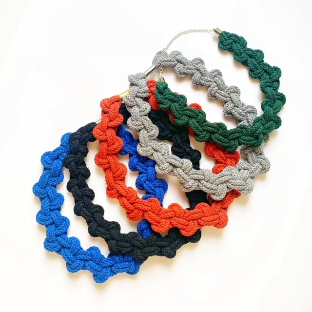 Cotton Rope Necklace made in Blue, Rust and Forest Green colour.