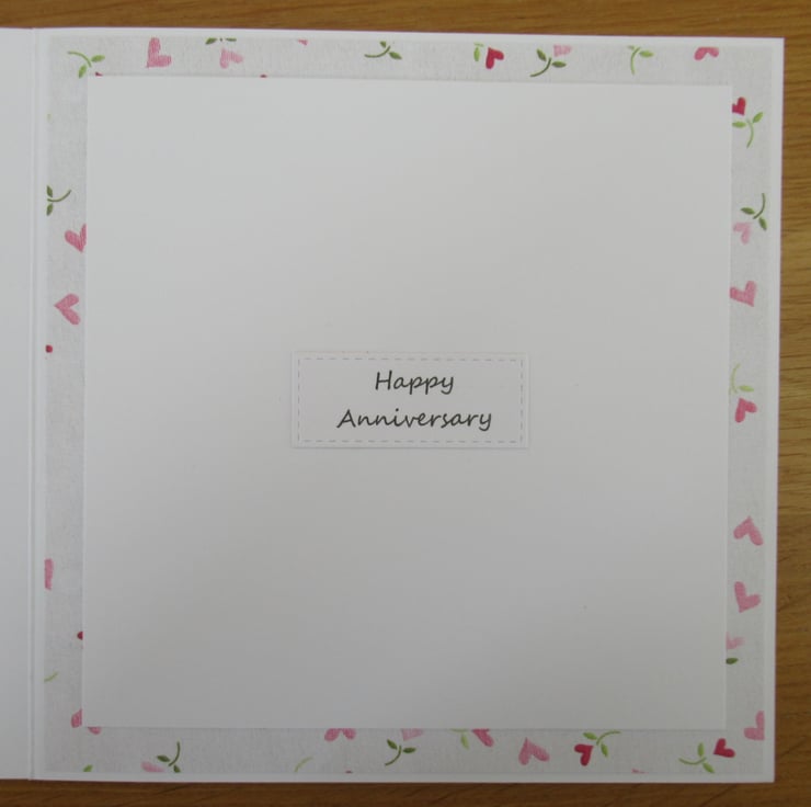 A lovely 7x7 inch Anniversary card in pinks and green.