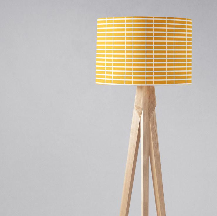 This beautiful yellow fabric with a white geometric striped design is an original design by Shadowbright. This lampshade looks great in the home. This lamp shade will fit on either a table lamp, floor lamp or on the ceiling.