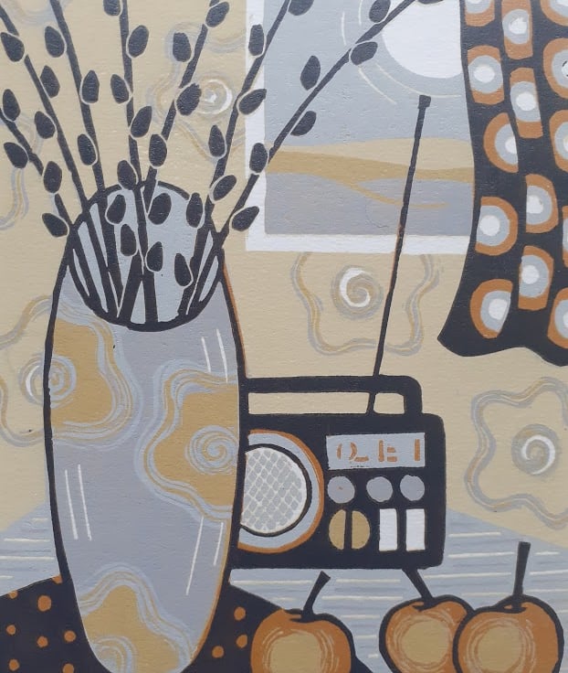 I had some beautiful pussy willow in a favourite vase. The radio is always on in the kitchen.