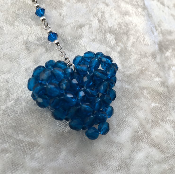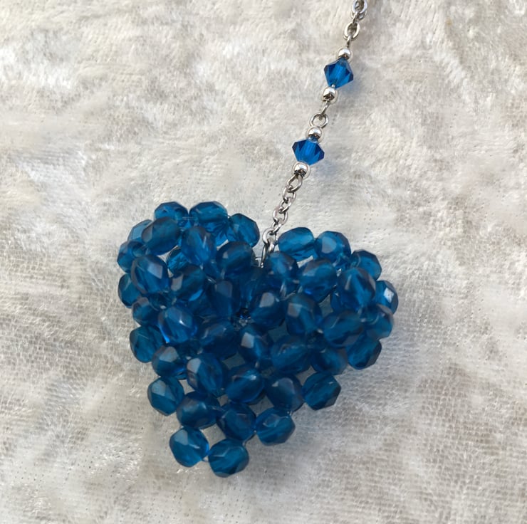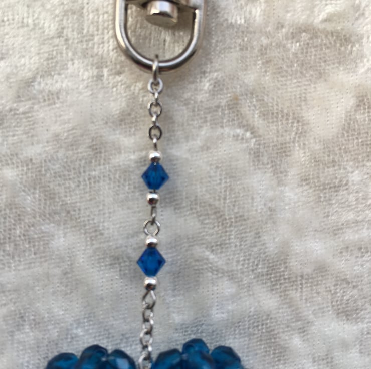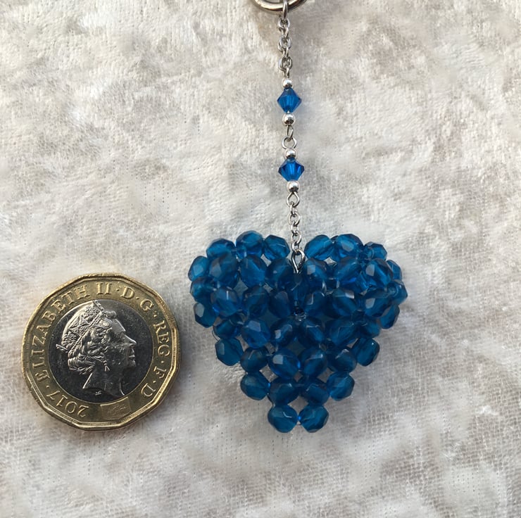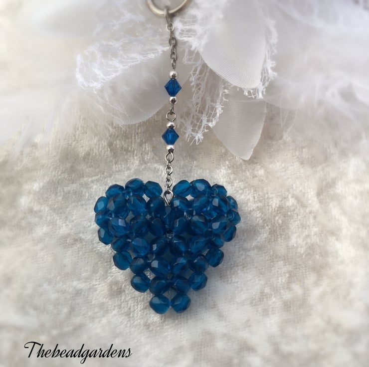 This is a lovely heart shaped charm. The heart is 3D that was made with Czech glass beads and also Swarovski crystal as a part of the chain. The length is 11cm.The heat itself is 2.7cm width and 3.1cm height.