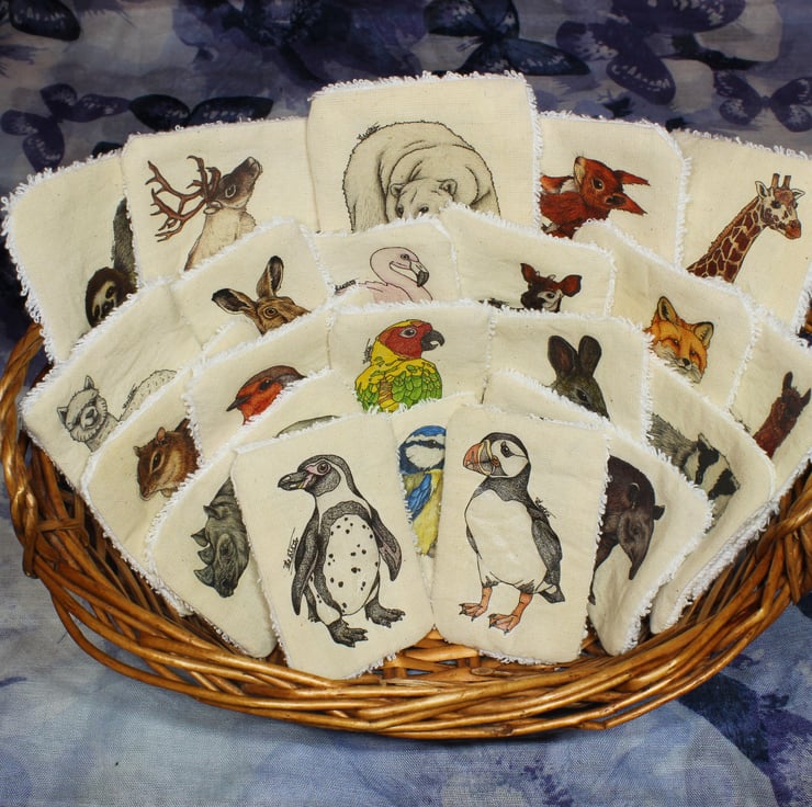I love animals and care for the environment, so I combined those two reasons to create my own range of Eco friendly face wipes which are reusable/washable and feature my very own drawings.
