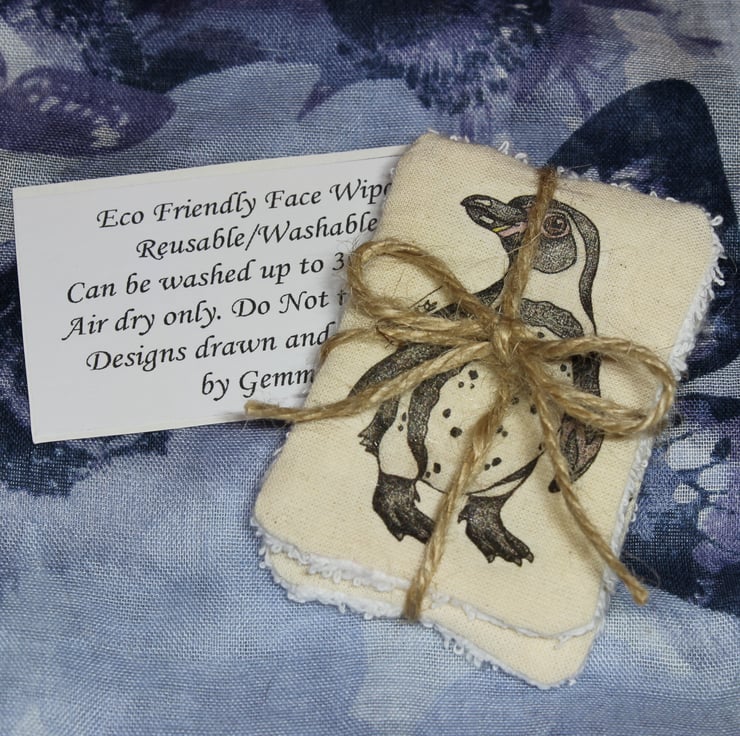 I love animals and care for the environment, so I combined those two reasons to create my own range of Eco friendly face wipes which are reusable/washable and feature my very own drawings.