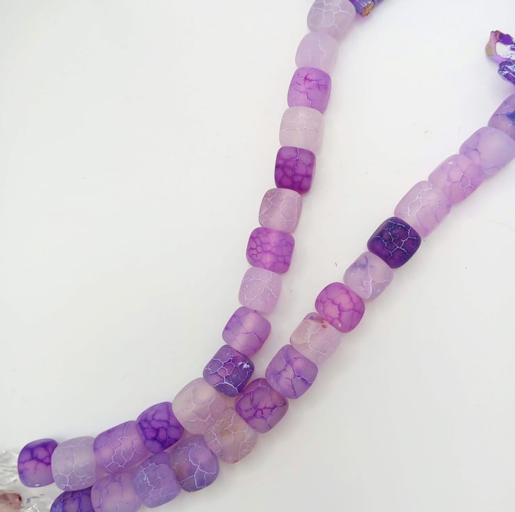 Purple Shards Lilac Cracked Agate Cube and Purple & Clear Crystals Necklace, Beaded Agate Necklace, Semi Precious Jewellery, Accessories, Birthday Gift, Anniversary Gift, Gift for Her, Shard Necklace
