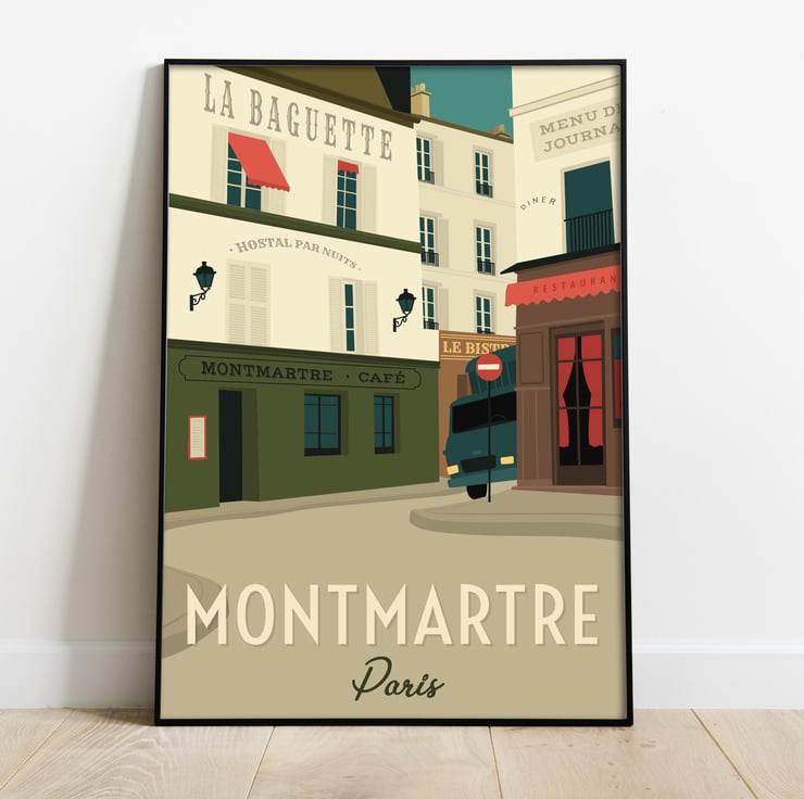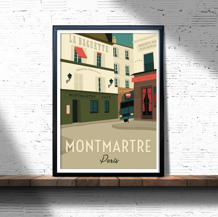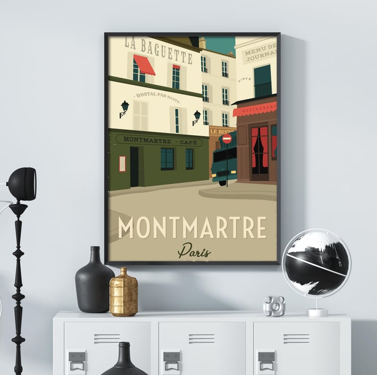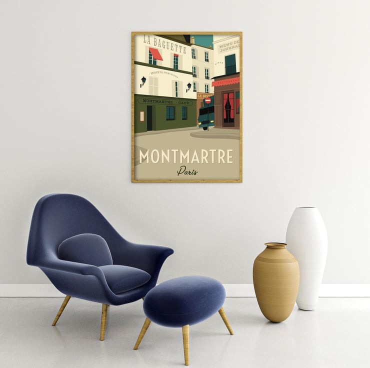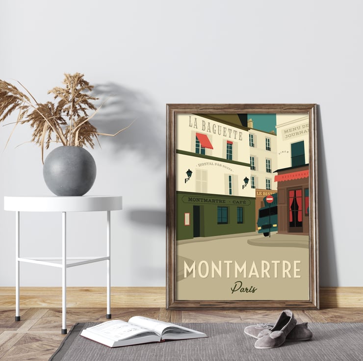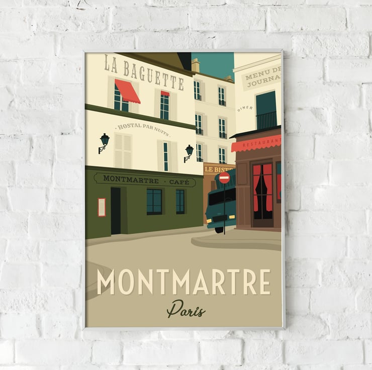 Montmartre retro travel poster, Paris city print, Paris travel poster