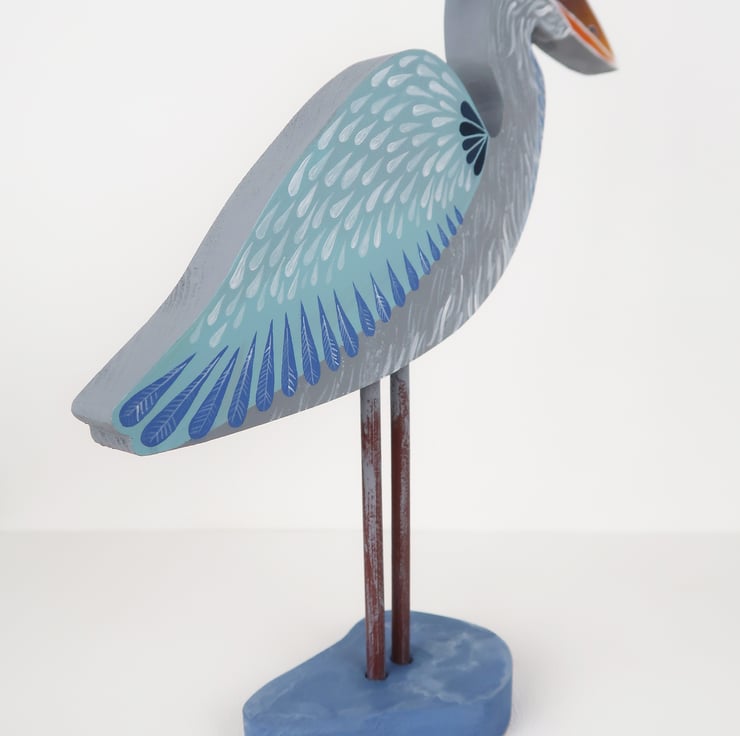 This bird statue is fully made by hands with love and huge attention to details. Made of pine wood & hand painted with acrylic paints. Varnished - semi gloss finish. Back is plain grey.