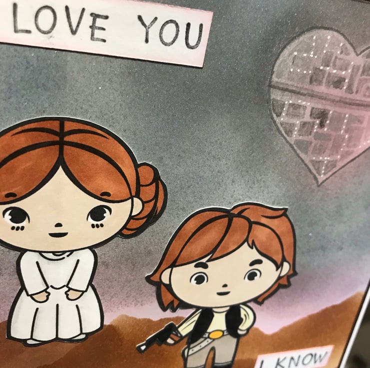 This card is perfect for any Star Wars fans and would be great for Valentines Day, Wedding Day, Wedding Anniversary or birthday.