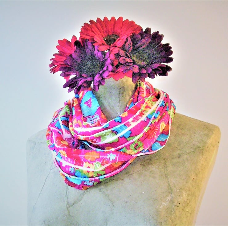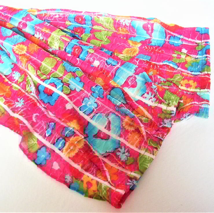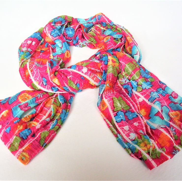 Pink Floral Scarf, Spring Summer, Fashion accessory, Frilled, Abstract Flowers