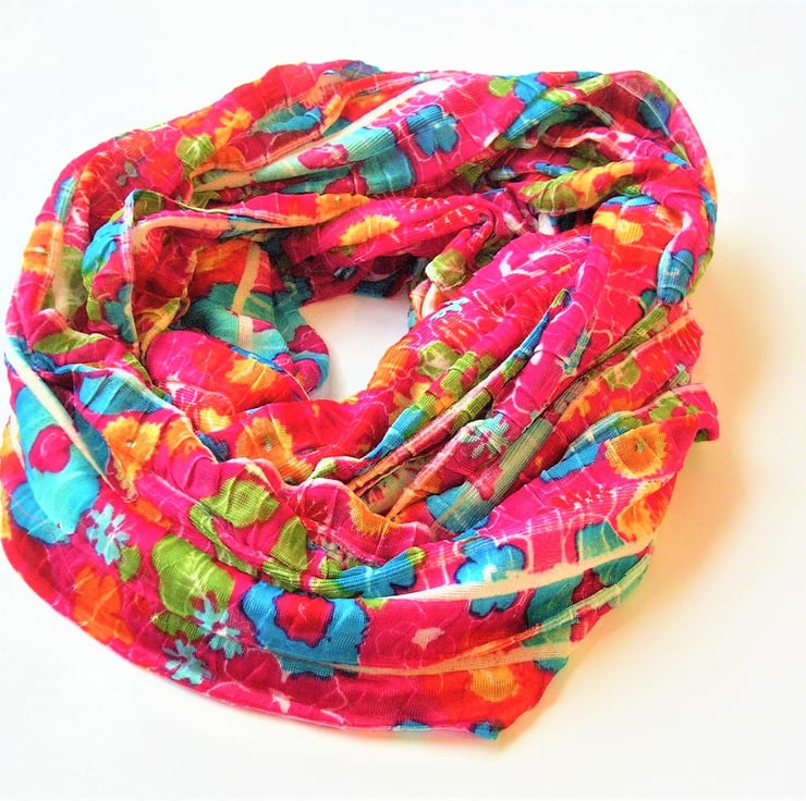 Pink Floral Scarf, Spring Summer, Fashion accessory, Frilled,  Abstract Flowers