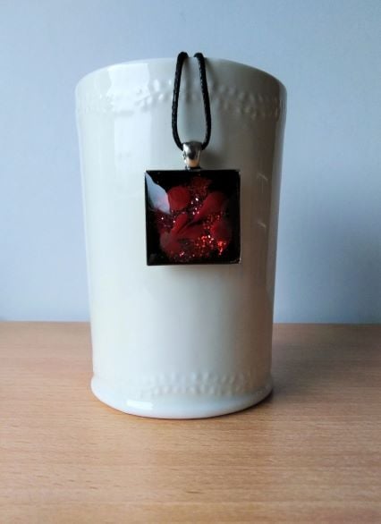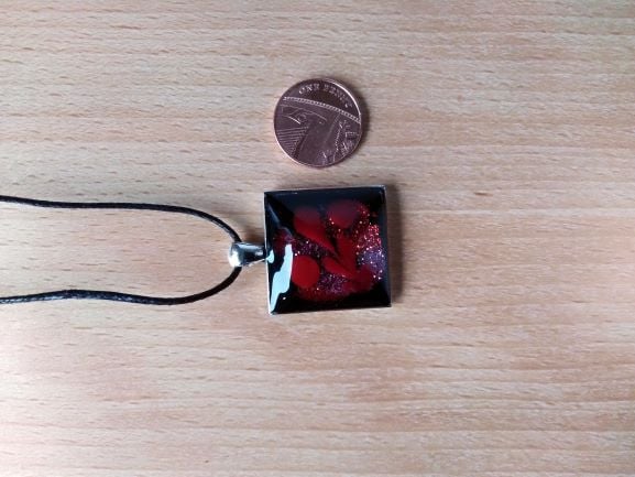 Beautiful hand crafted (NO VOC, NO BPA) Non yellowing arts and craft epoxy resin Red sparkling square.