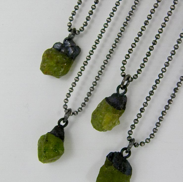 These yummy Peridot chunks are hung from a 1.5mm, solid sterling silver ball chain and are available in 16, 18 or 24 inches.
