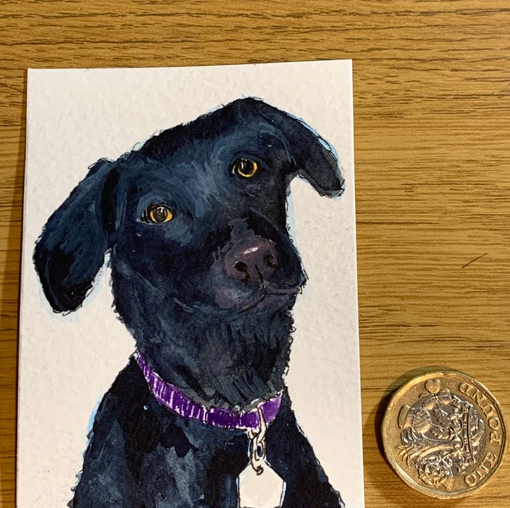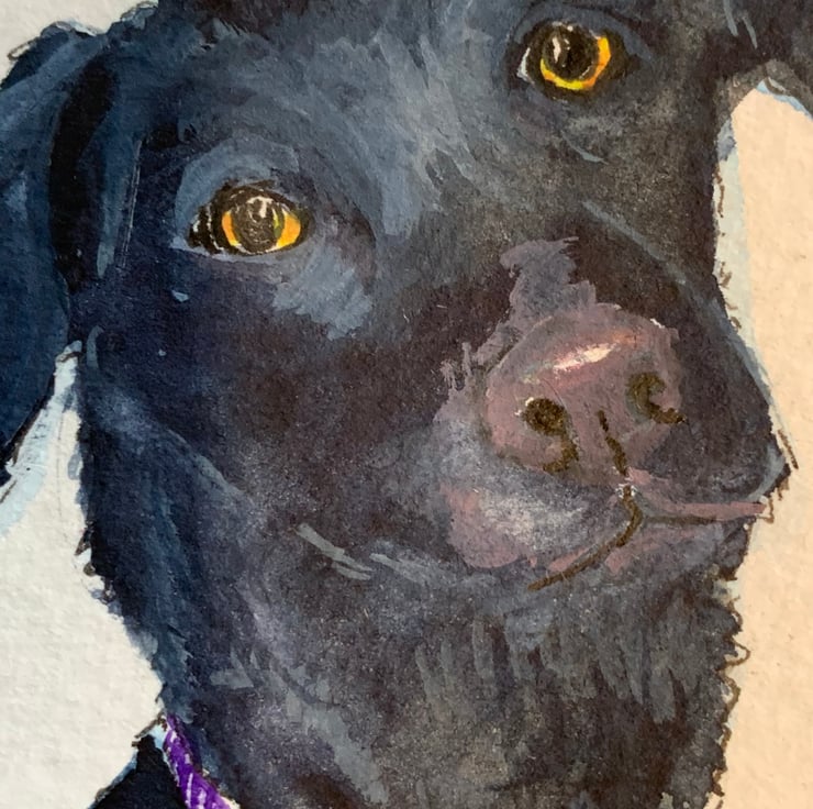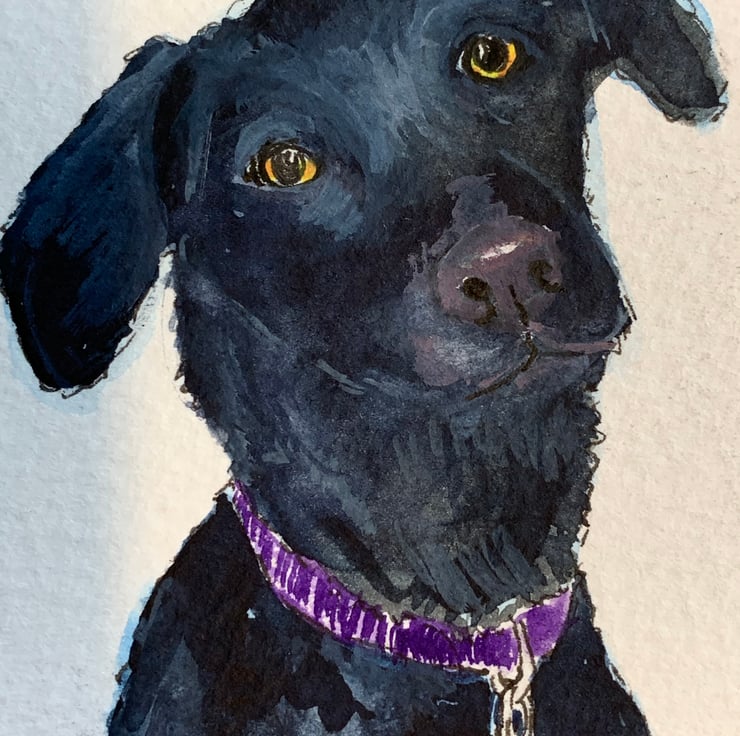 Original artwork of a sweet faced black Labrador. I have used professional artists pens and artist grade watercolour paints, on textured white 300gsm This is an original not a print!