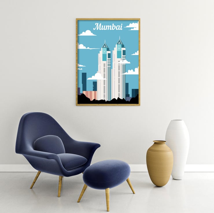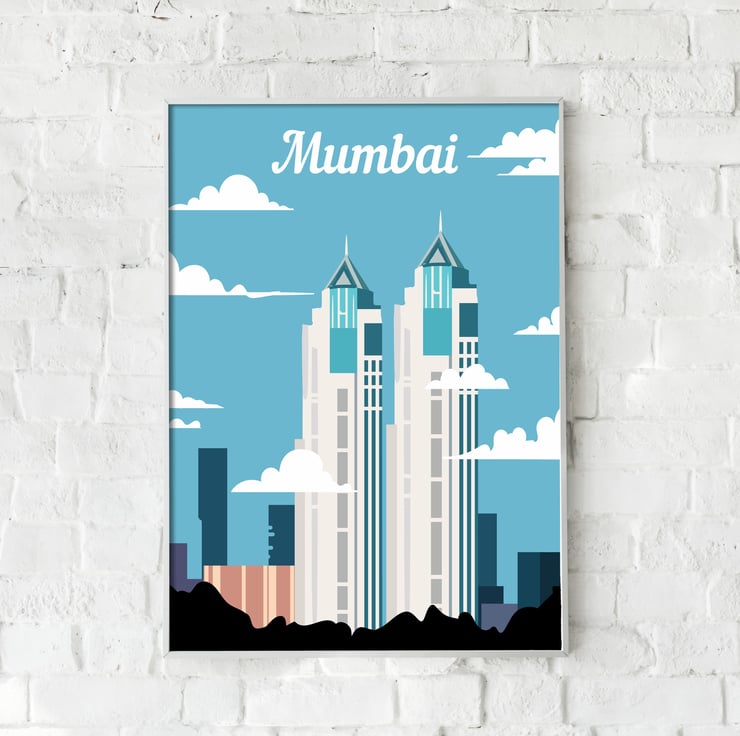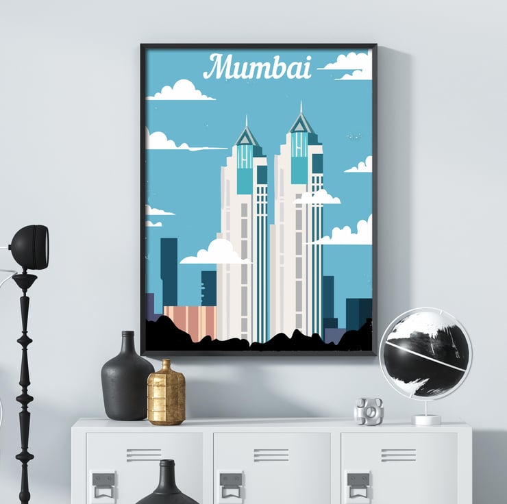 Mumbai travel print, Mumbai retro city print, India travel poster, gift