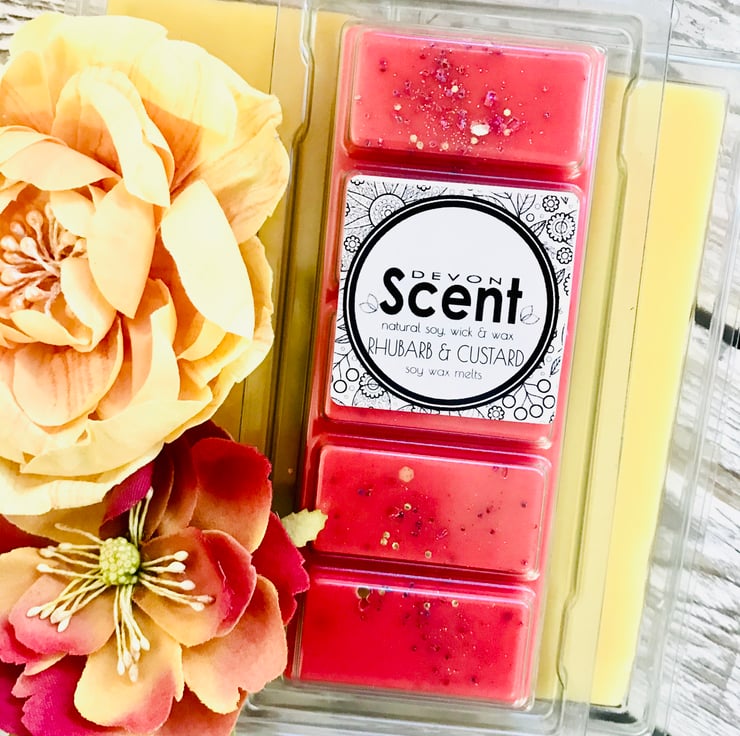 Our highly fragranced long lasting Rhubarb & Custard Snap Bar Wax Melts have a sweet accord of juicy rhubarb and vanilla custard.