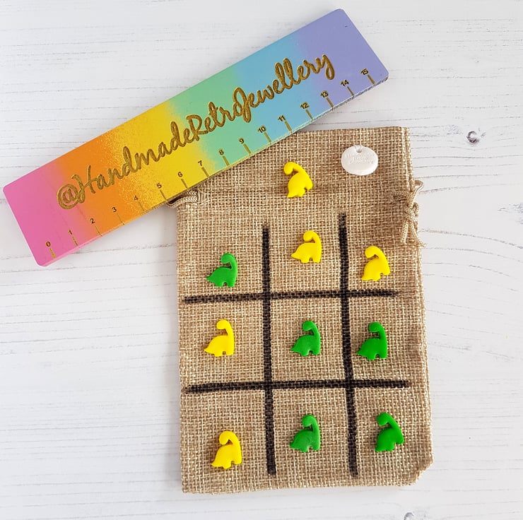 This set is with some cute little dinosaurs as playing pieces, individually hand made using polymer clay! Choose your dinosaur colours for extra uniqueness!
