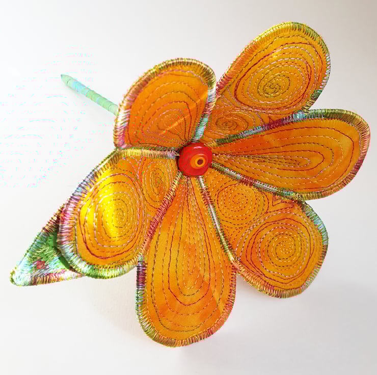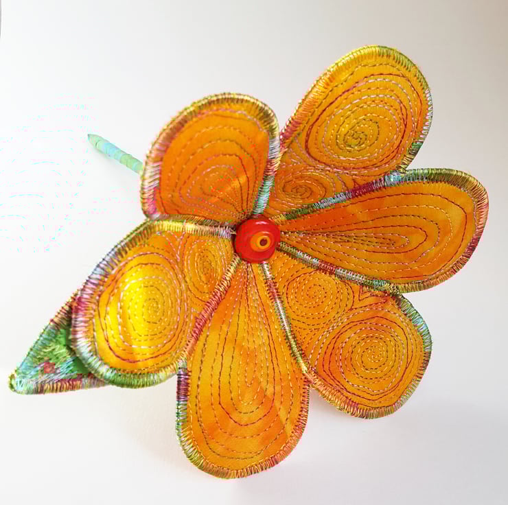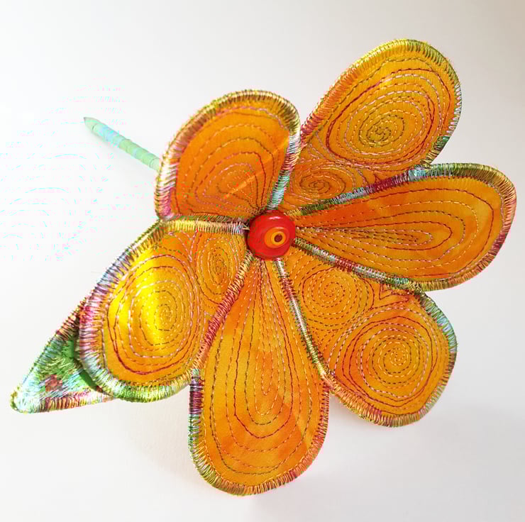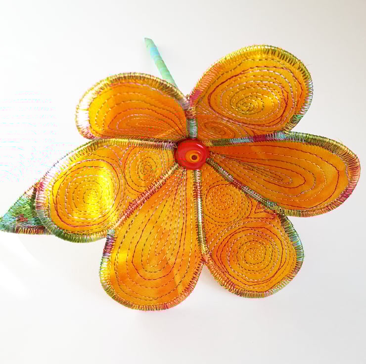This is a handmade machine stitched textile flower