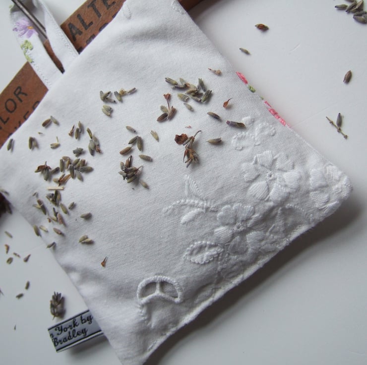 I love to find ways to reuse these sweet little hand sewn embroideries, and lavender bags are the perfect way to use up those tiny sections which are not too care worn or damaged.