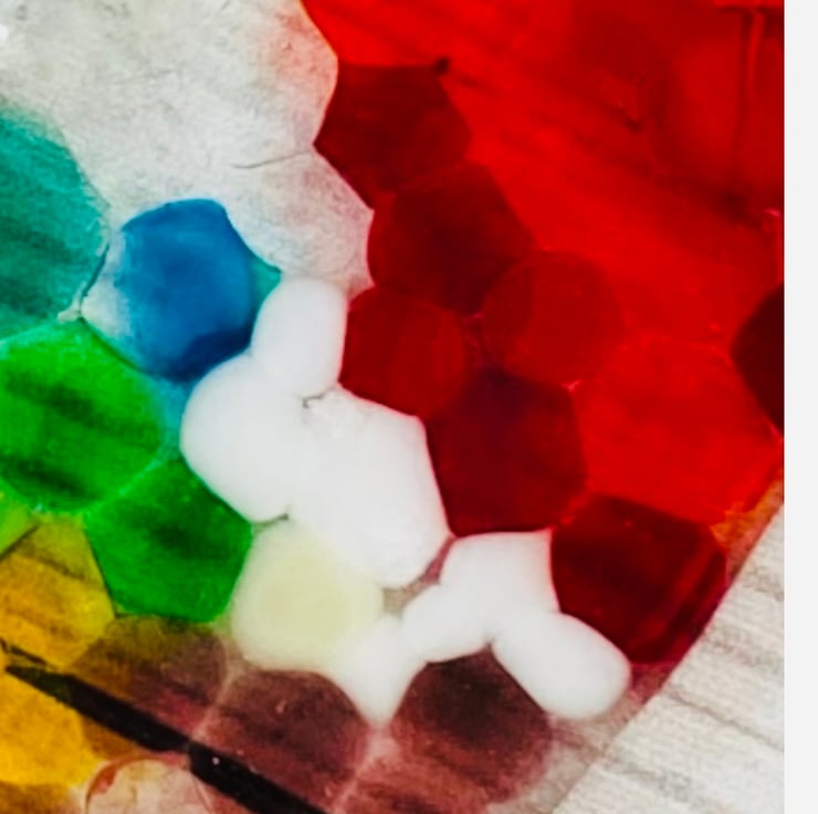 Two fused hearts each approximately 3in x3 in . Pre fused glass beads , glue and jute together with guidance included in this kit which can be posted through your letter box .