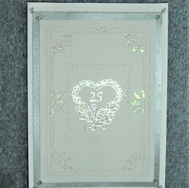 On the front is a silver heart and the numbers "25"
