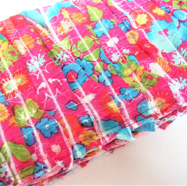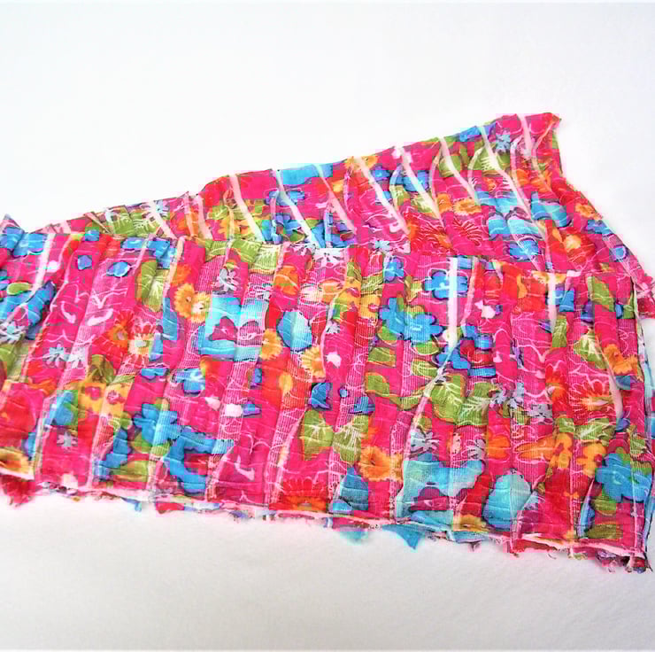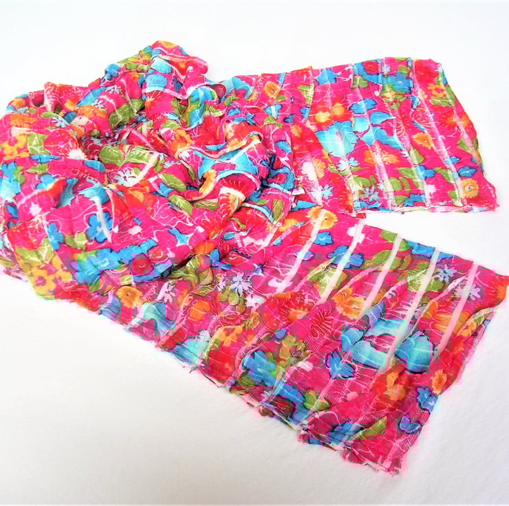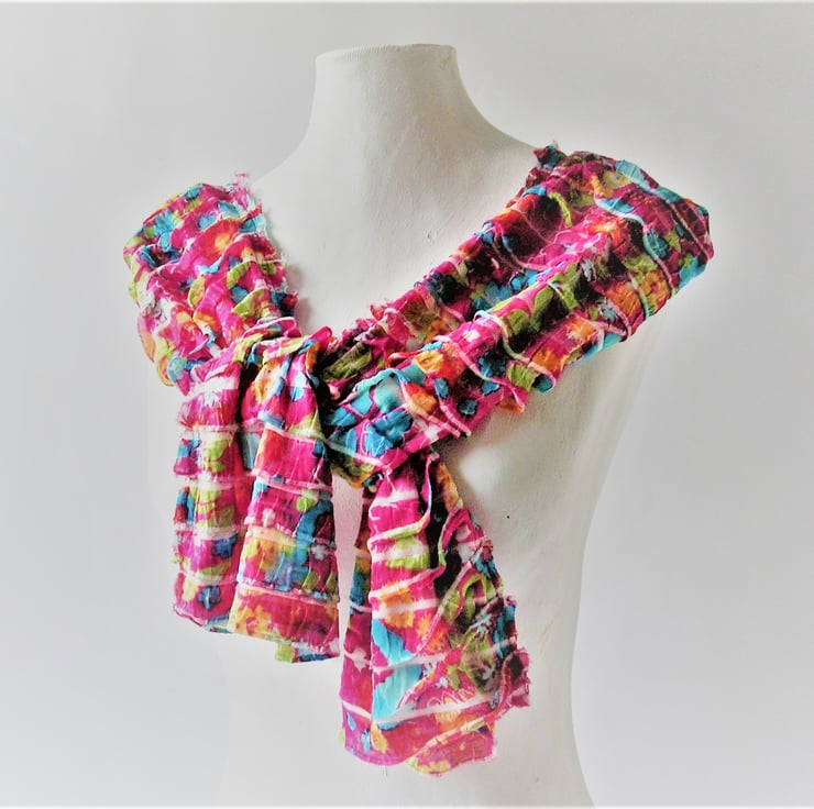 Crimson Pink Floral Scarf, Summer and Spring Fashion accessory, softly ruffled