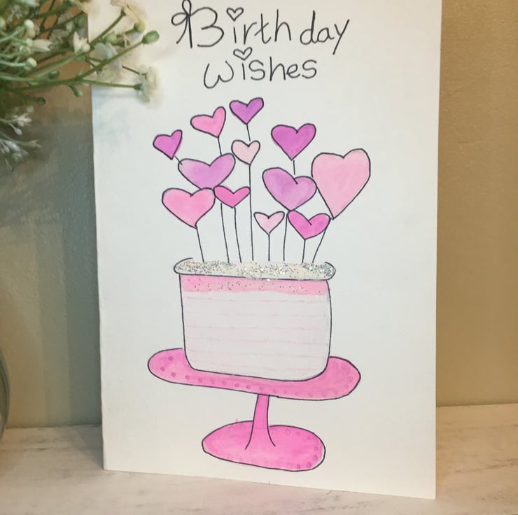 Hand painted Birthday cake card for someone special.