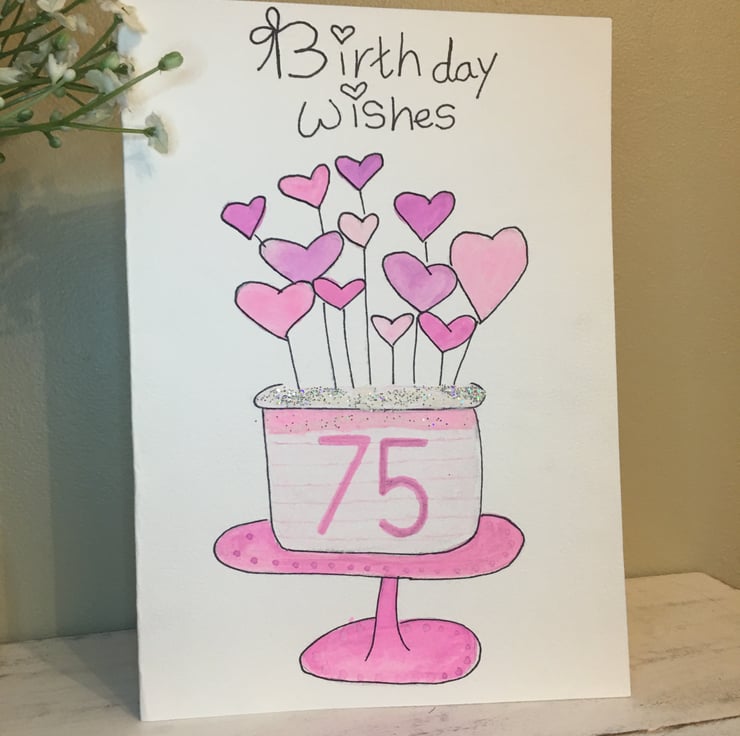 A hand drawn and hand painted watercolour card for a special birthday.