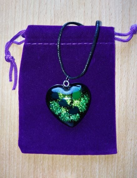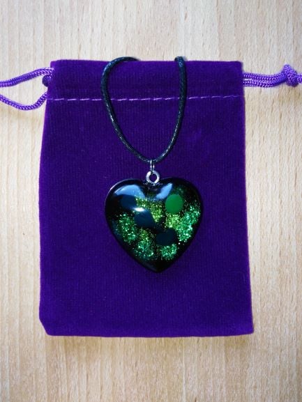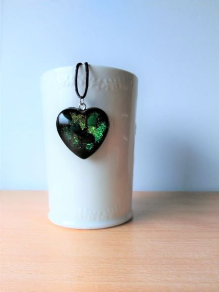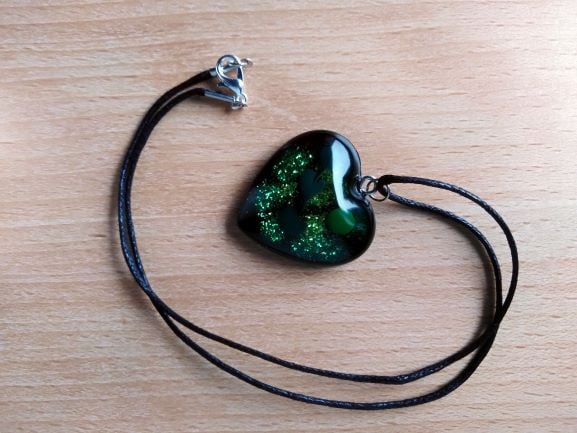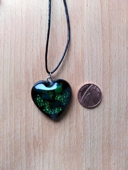 Beautiful hand crafted (NO VOC, NO BPA) Non yellowing arts and craft resin green sparkling heart.
