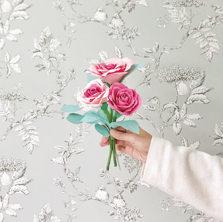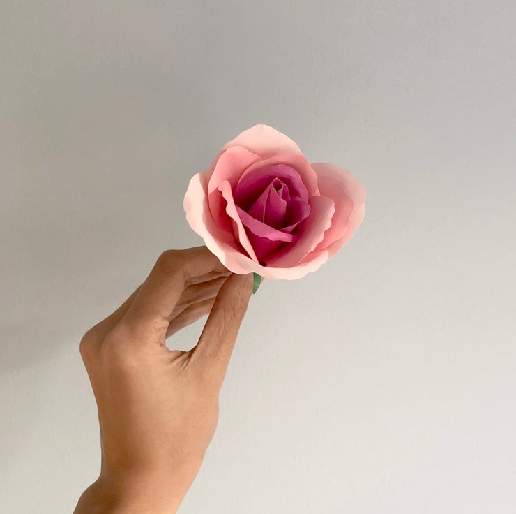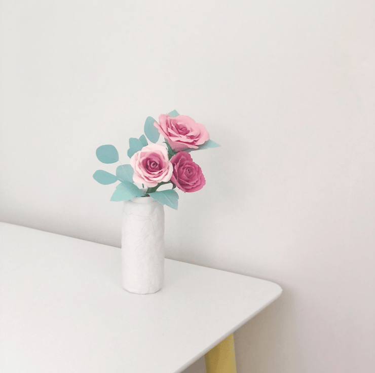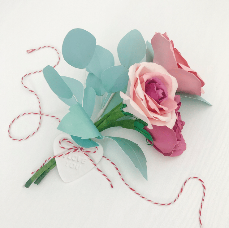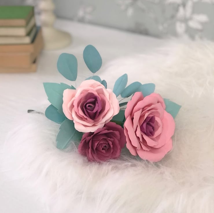 Show the love of your life how much they mean to you by giving them this enchanting paper rose posy. This everlasting bouquet features 3 roses in antique pink complemented by a sprig of eucalyptus. It is a truly memorable gift especially for first anniversaries, Valentine's Day, Mother's Day, birthdays or just because days.