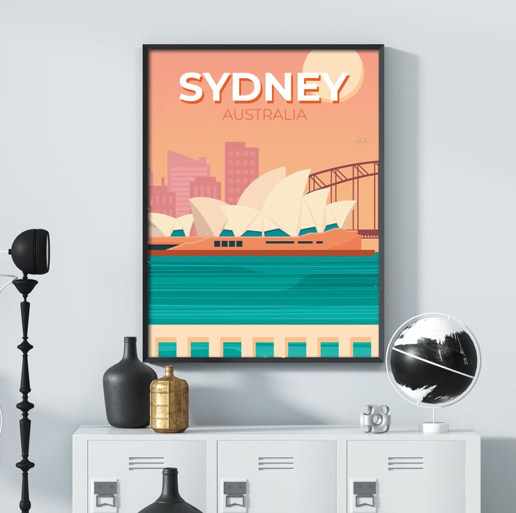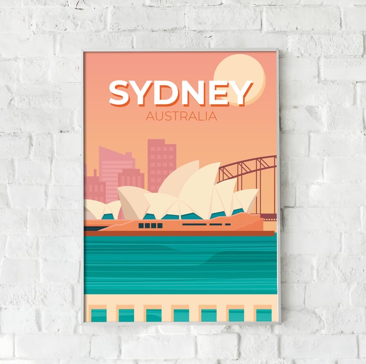 Sydney wall print, Sydney retro city print, Sydney Opera House art print