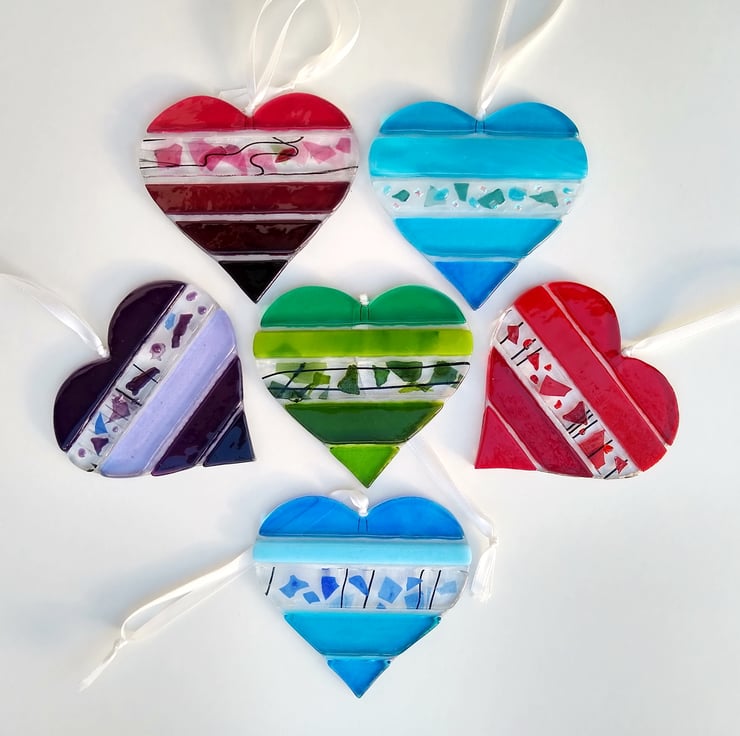 Sometimes in my workshop I just enjoy experimenting with colour combinations: this Heart light-catcher made with vibrant shades of pink glass is one of the results.
