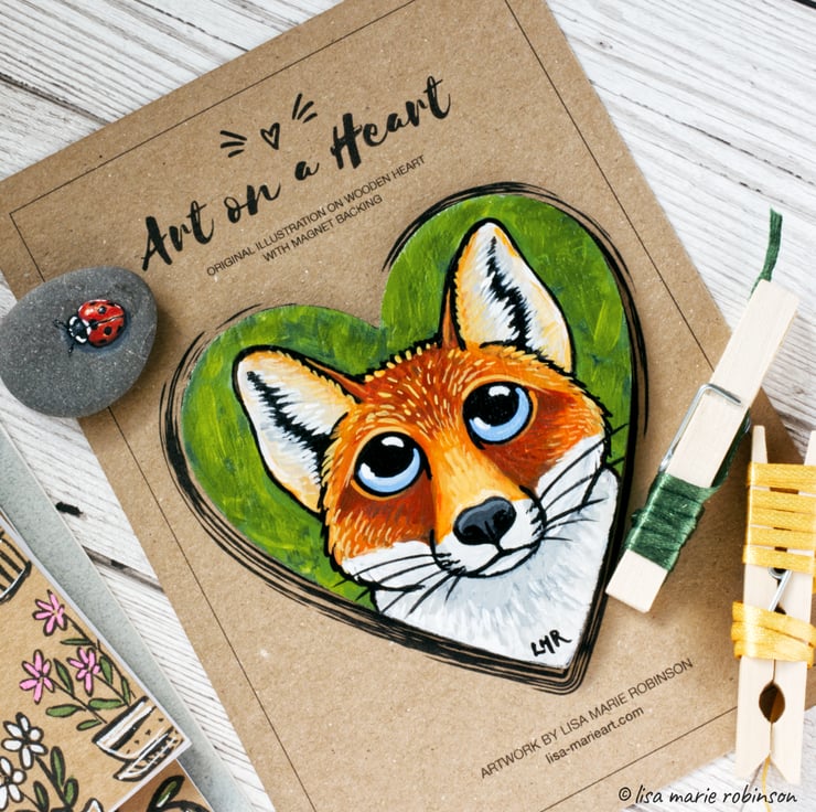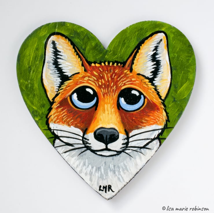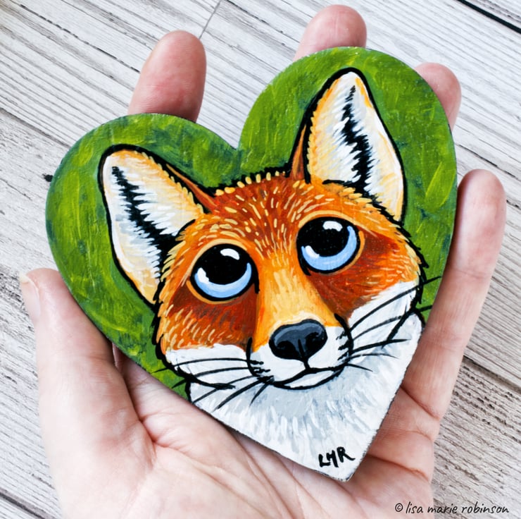 Original hand painted heart shaped fridge magnet featuring a fox.