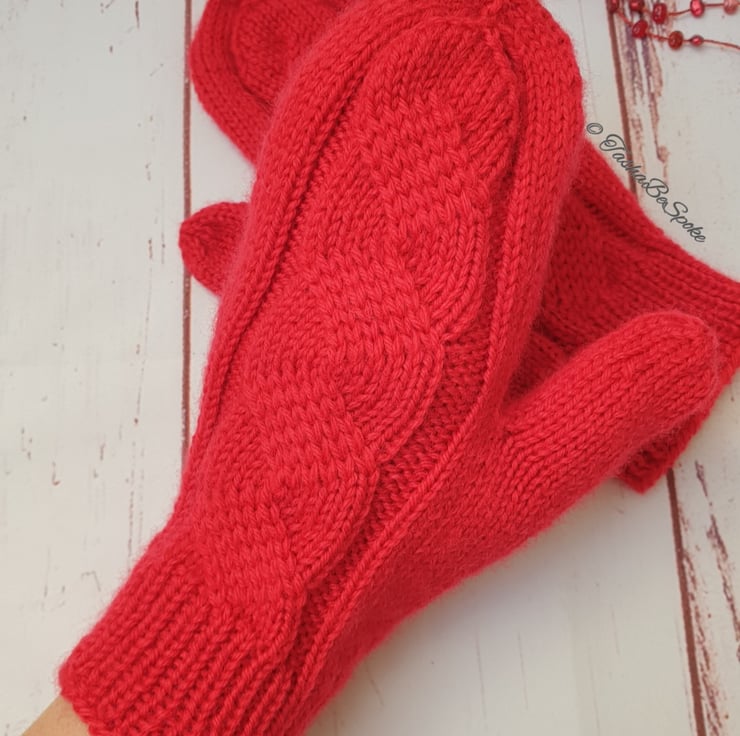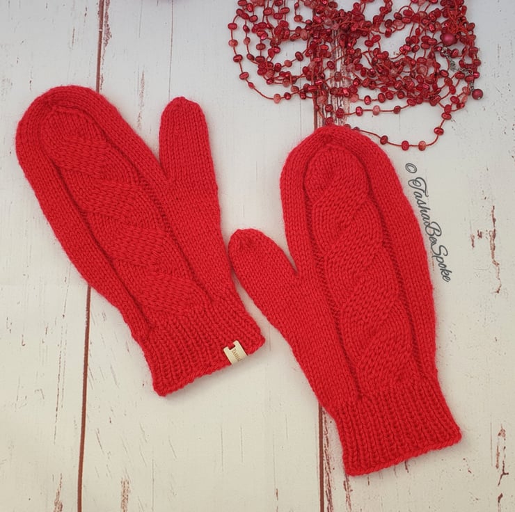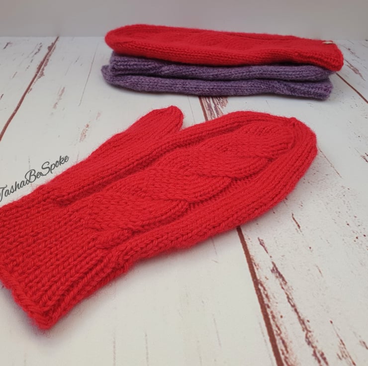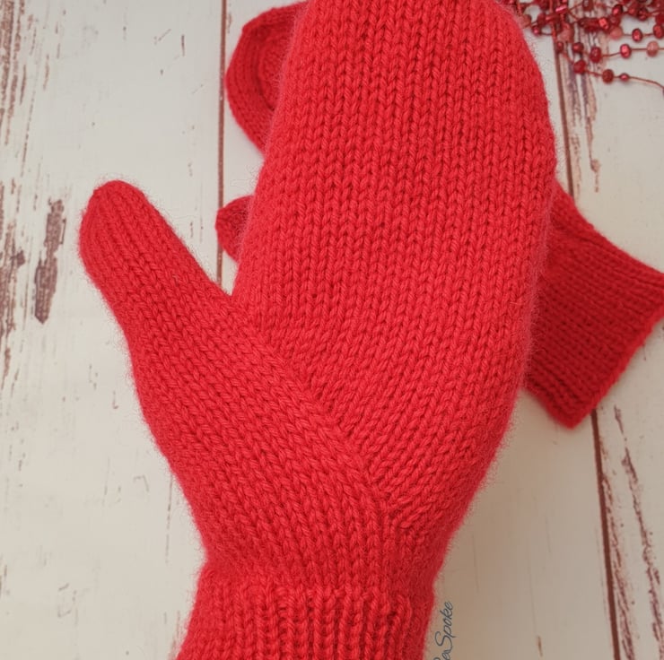 Pictured mittens made in colour 18 - Red.