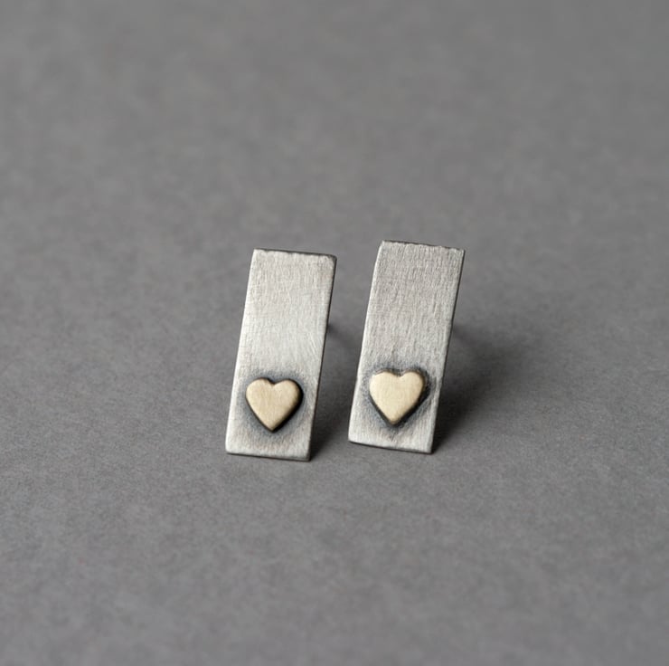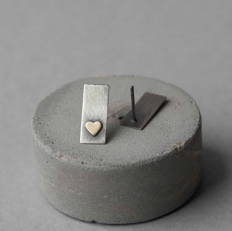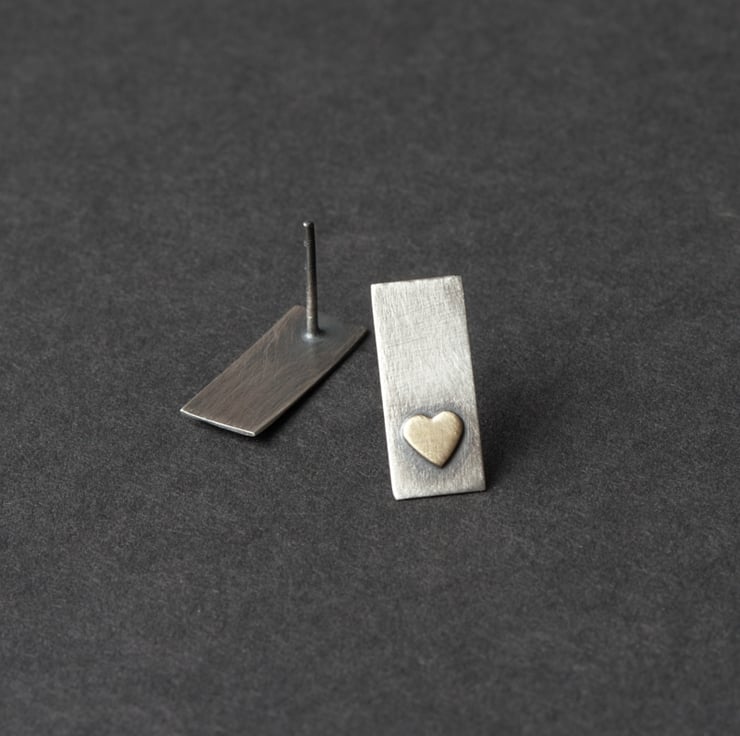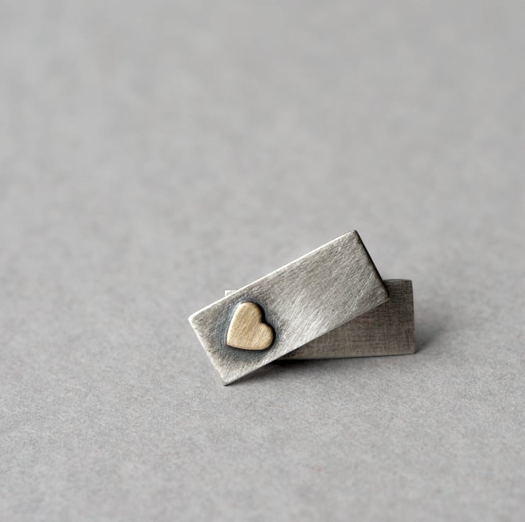 Elegant little bar studs with a hand cut brass heart.