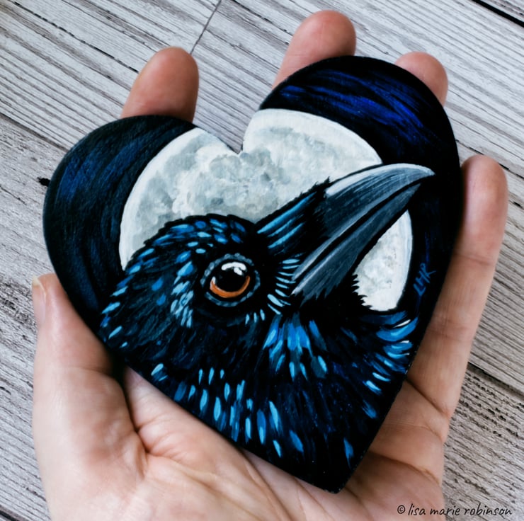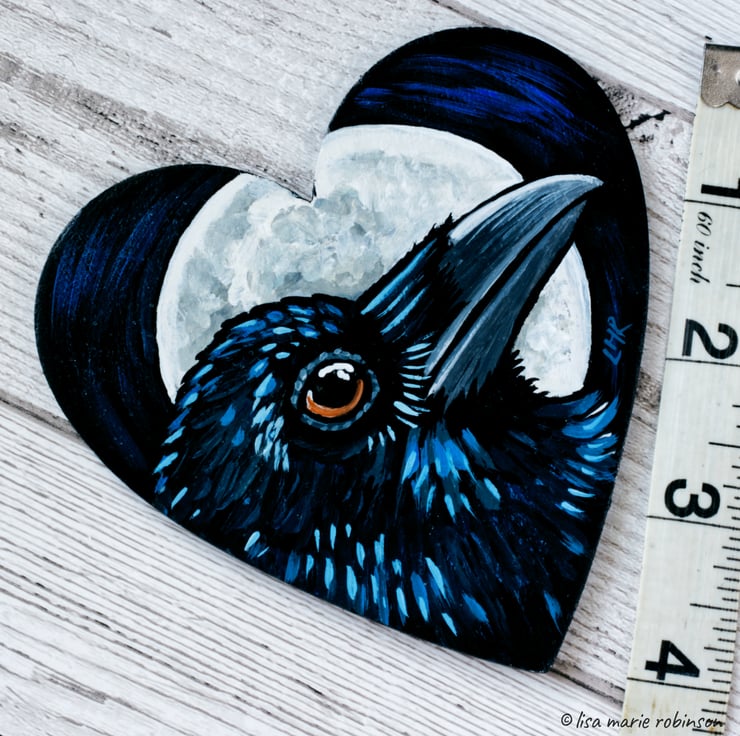 Original painting on a wooden heart-shaped magnet. One of a kind magnetic art for your fridge.